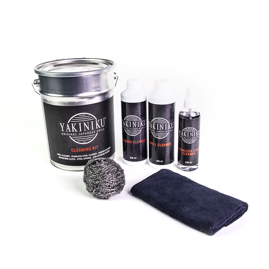 See puhastuskomplekt sisaldab roostevaba terase puhastus- ja hooldusvahendit, kamado puhastusvahendit, grillpuhastusvahendit, mikrokiudlappi, terasest käsna ja ämbrit söejääkide jaoks.